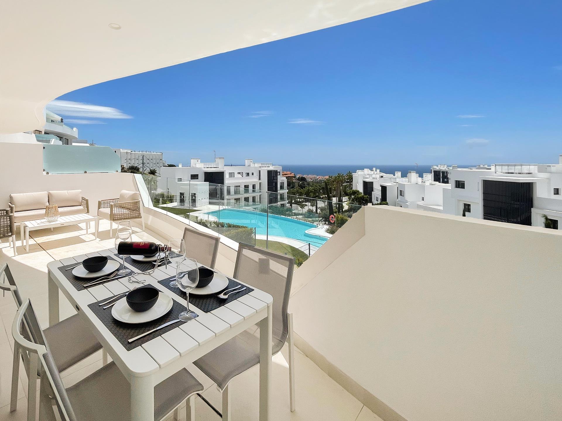 Lujo, tranquilidad, comodidad, una terraza orientada al sur con impresionantes vistas al mar y una piscina.