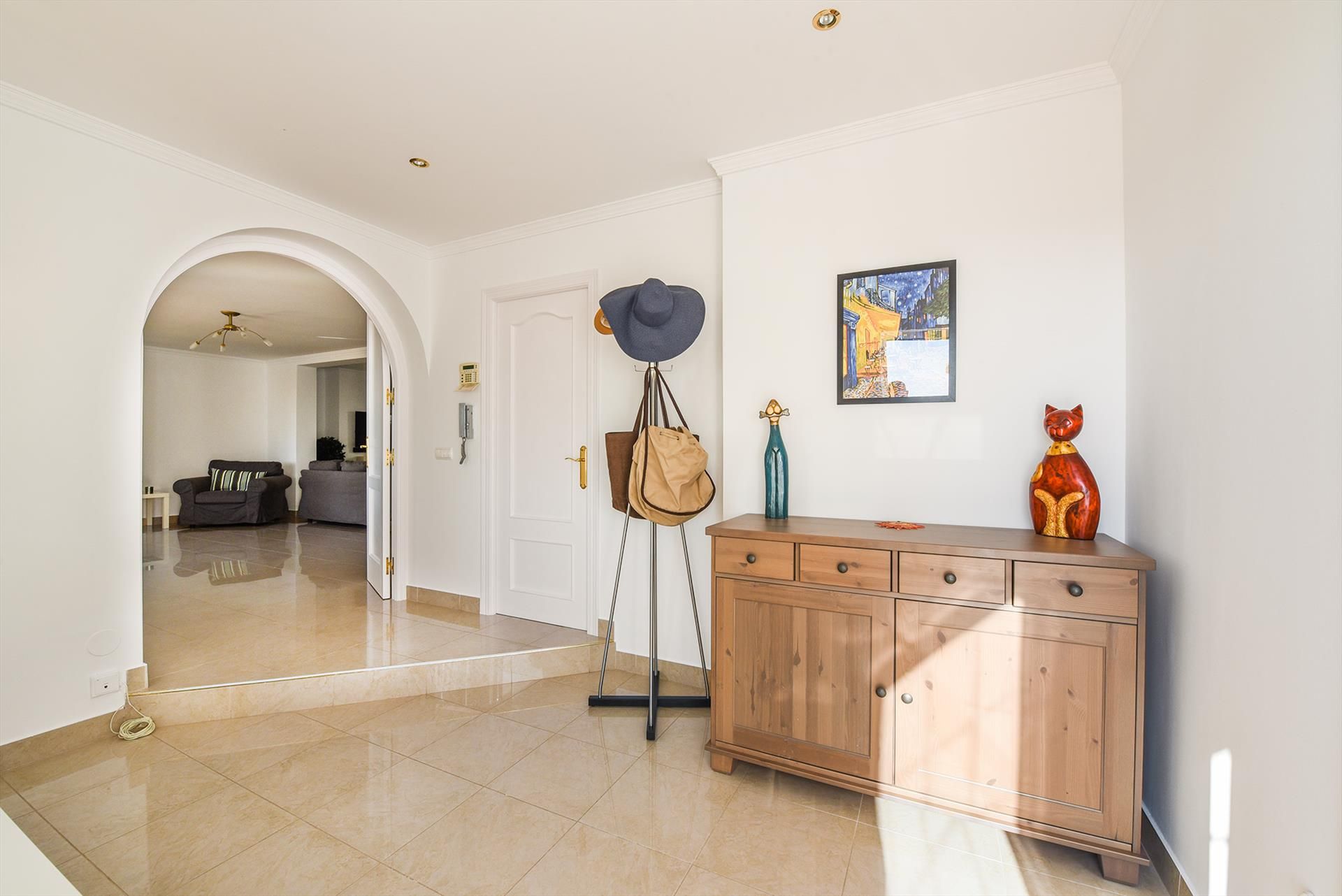 Hay cuatro dormitorios con amplios armarios y aire acondicionado/calefacción. El dormitorio principal tiene un baño en suite y una cama doble de 180 x 200. El segundo dormitorio tiene un baño en suite, 2 camas individuales de 90 X 200. El tercer dormitorio tiene 2 camas individuales de 90 x 200. El cuarto dormitorio tiene 2 camas individuales juntas de 90 x 200. Una silla alta y una cuna están disponibles bajo petición.