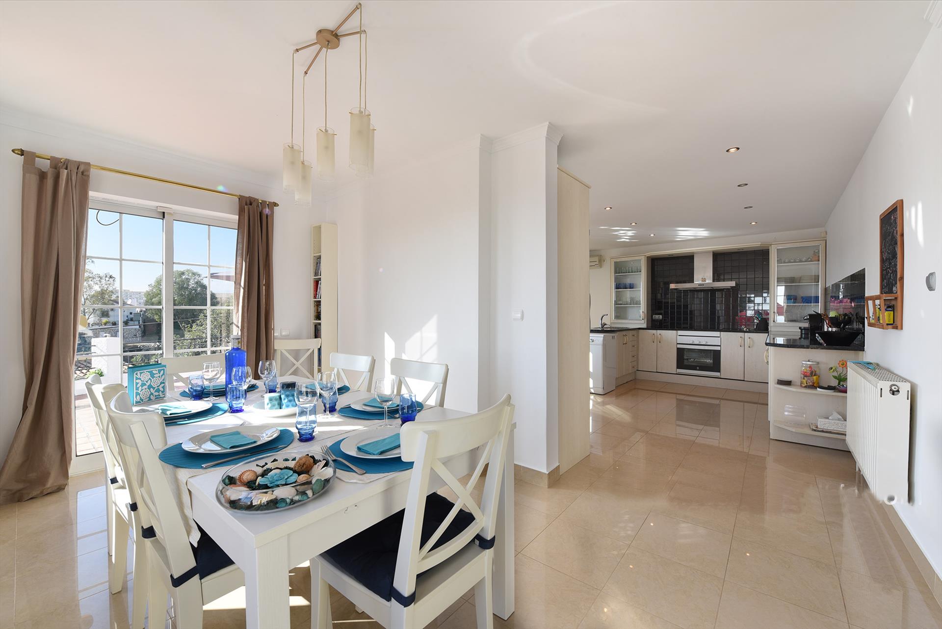 - Comedor separada con mesa de comedor y ocho sillas y puertas a la terraza orientada al sur
