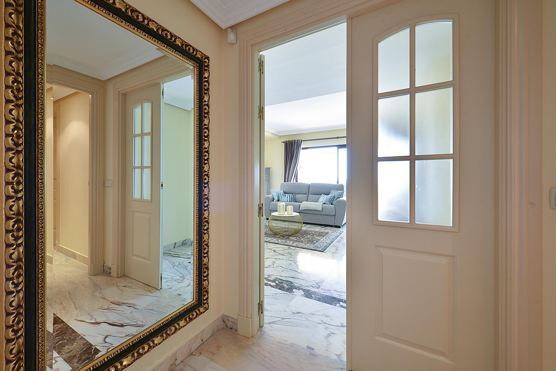 Este gran apartamento con dos dormitorios, dos baños amplios y cocina independiente está muy bien situado en el pequeño complejo Puerta del Mar. La amplia terraza, orientada al sur, con preciosas vistas al mar y a la costa, se puede cerrar completamente con paneles de cristal correderos. En la terraza podrá disfrutar de un delicioso desayuno o cena en la espaciosa mesa de terraza para 6 personas o relajarse con un aperitivo y una bebida en uno de los sofás lounge mientras disfruta de las hermosas vistas.