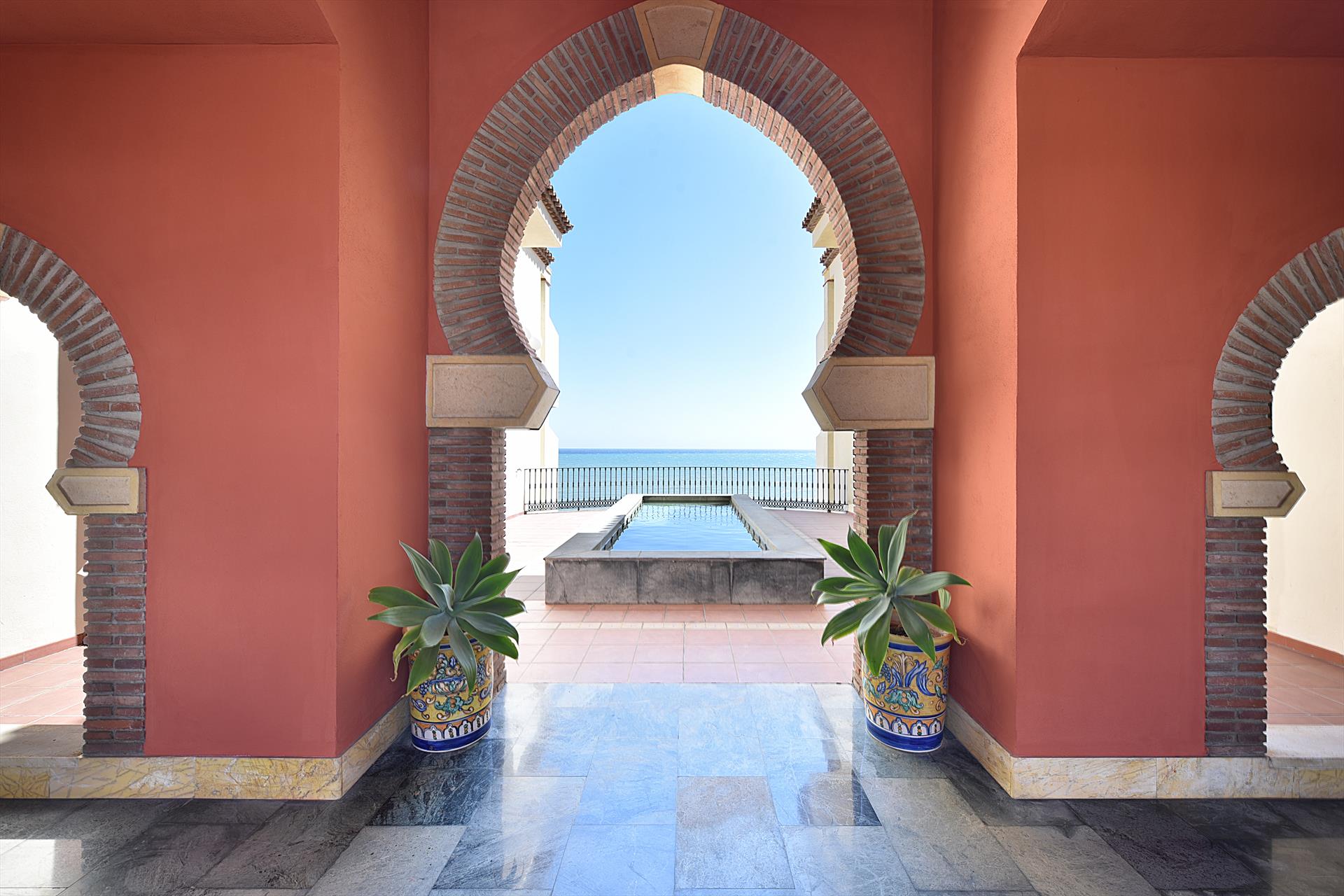 El pequeño complejo Puerta del Mar tiene una piscina comunitaria con tumbonas. Unos escalones junto a la piscina conducen directamente a la tranquila playa.