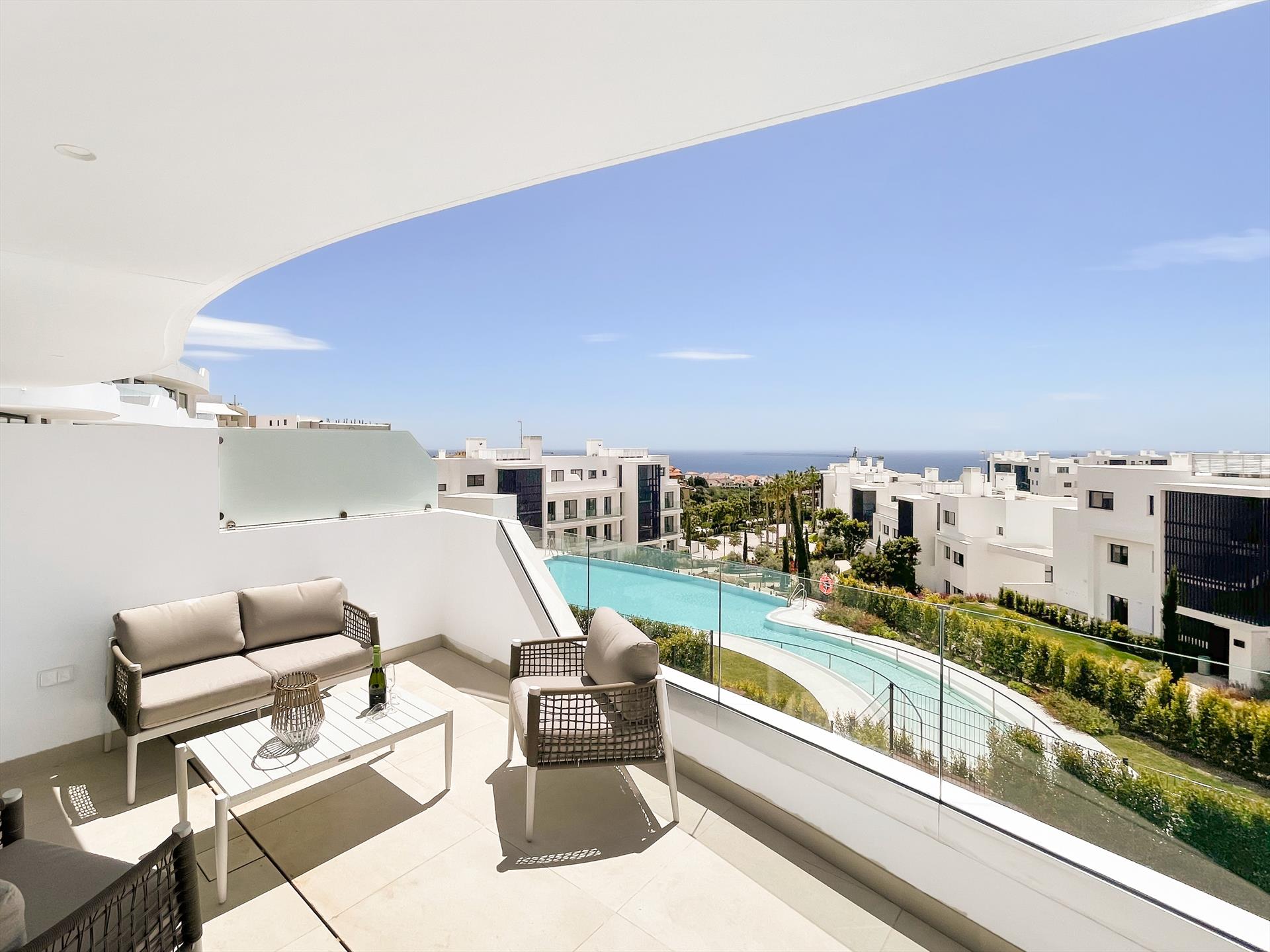 Lujo, tranquilidad, comodidad, una terraza orientada al sur con impresionantes vistas al mar y una piscina.