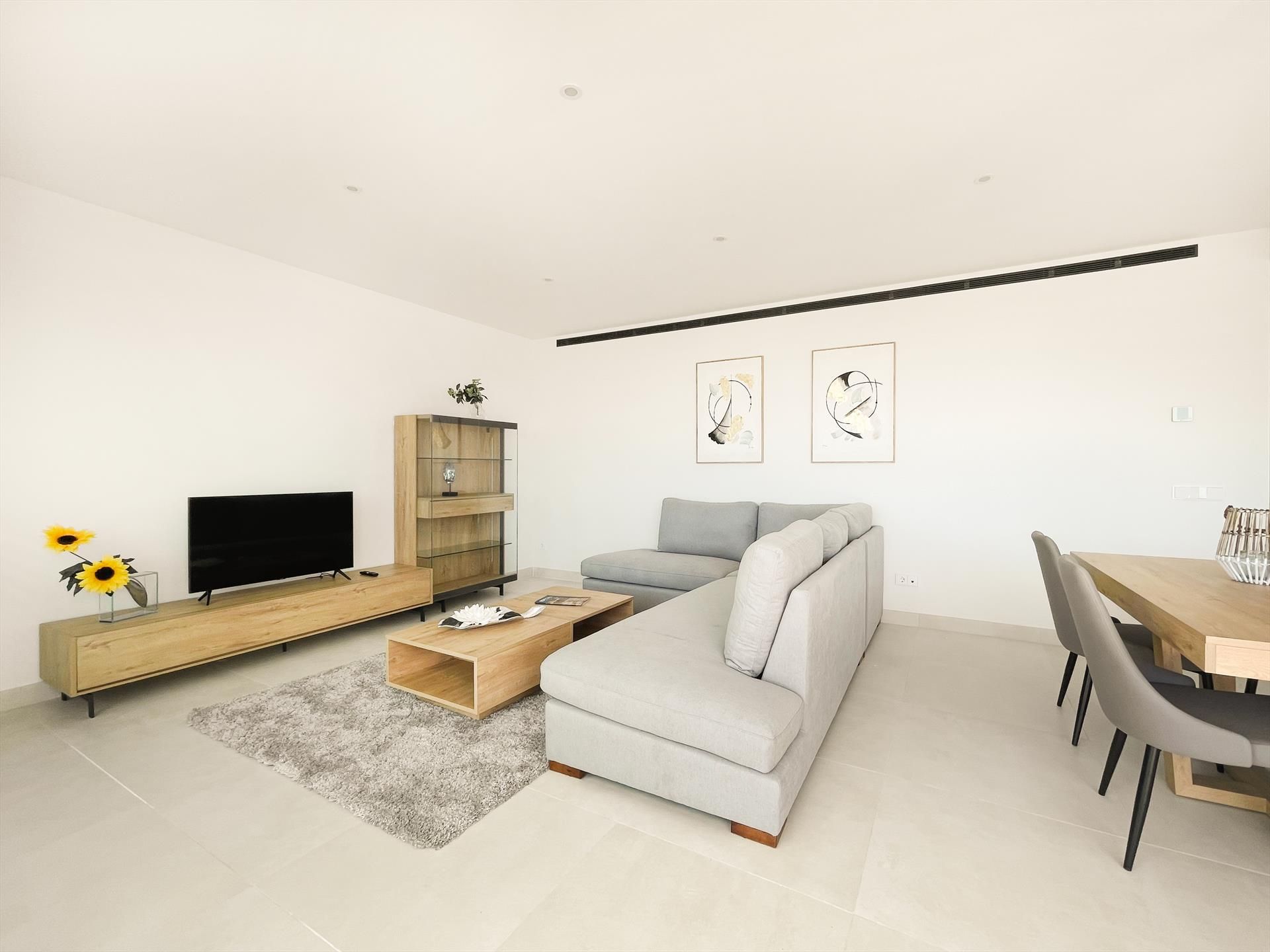 Este apartamento de lujo tiene todo lo necesario para unas vacaciones maravillosas. El apartamento tiene un amplio salón con cocina moderna abierta totalmente equipada, 2 dormitorios, 2 baños y una gran terraza orientada al sur con vistas al mar. El apartamento está equipado con muebles modernos y confortables. Se encuentra en el segundo piso y tiene ascensor. Usted tiene una plaza de aparcamiento en el aparcamiento en la entrada del apartamento.