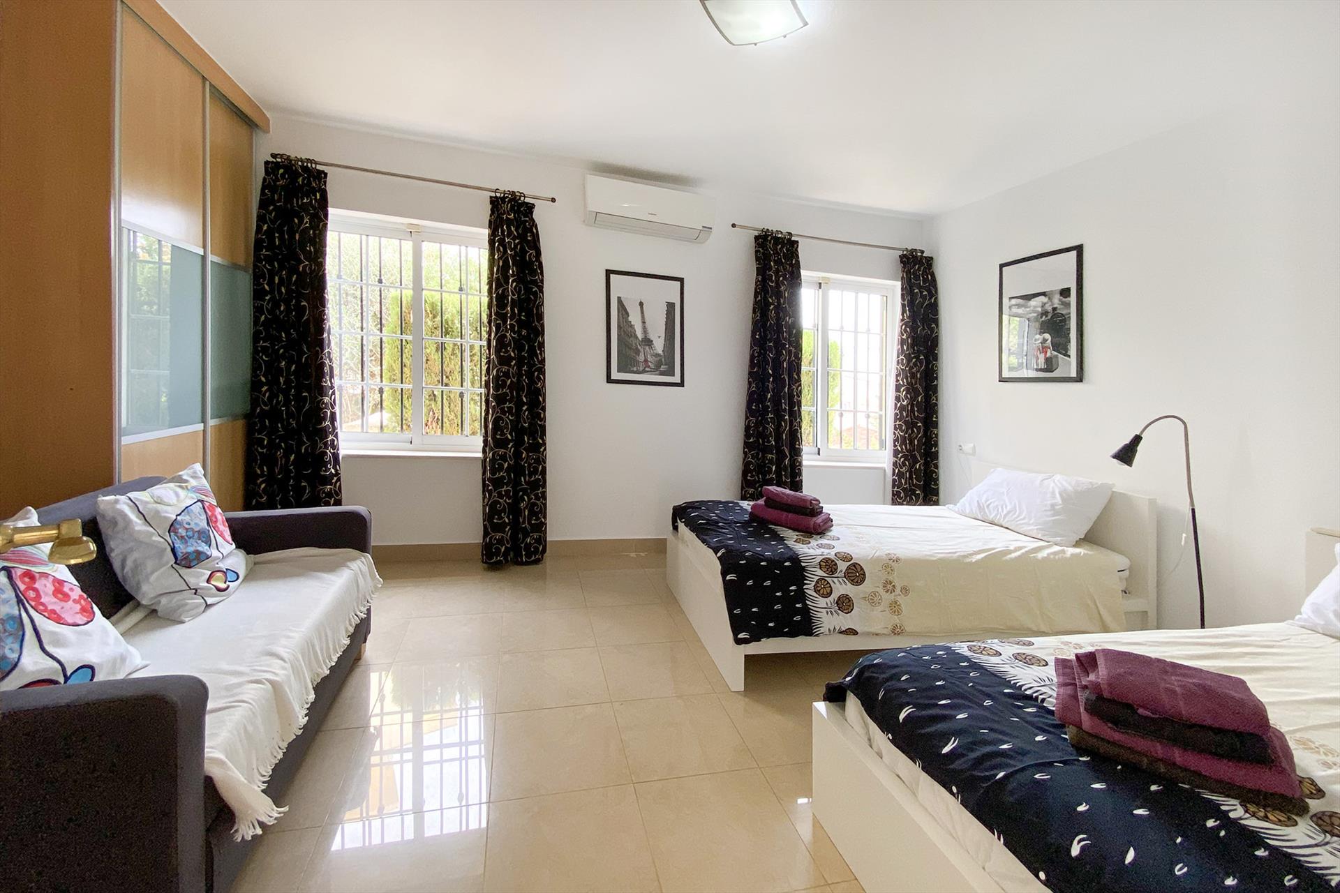 Hay cuatro dormitorios con amplios armarios y aire acondicionado/calefacción. El dormitorio principal tiene un baño en suite y una cama doble de 180 x 200. El segundo dormitorio tiene un baño en suite, 2 camas individuales de 90 X 200. El tercer dormitorio tiene 2 camas individuales de 90 x 200. El cuarto dormitorio tiene 2 camas individuales juntas de 90 x 200. Una silla alta y una cuna están disponibles bajo petición.