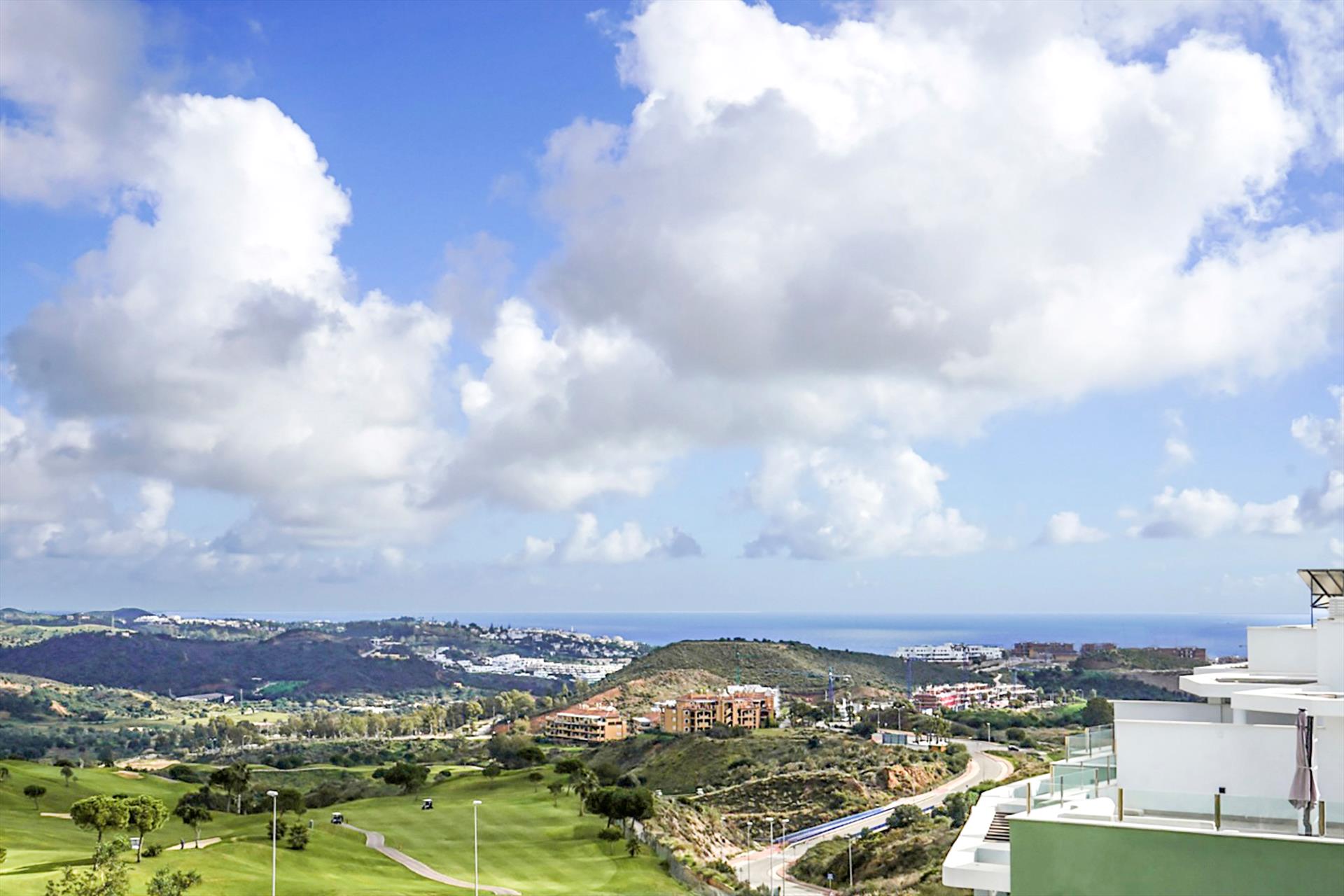 La urbanización está situada en una zona tranquila a solo 4 km del antiguo pueblo pesquero de La Cala y de la playa. El complejo cuenta con un bonito jardín con piscina comunitaria, piscina cubierta climatizada, gimnasio, baño turco y sauna. Desde el apartamento se puede disfrutar de hermosas vistas del valle, las montañas de Mijas y el mar Mediterráneo.