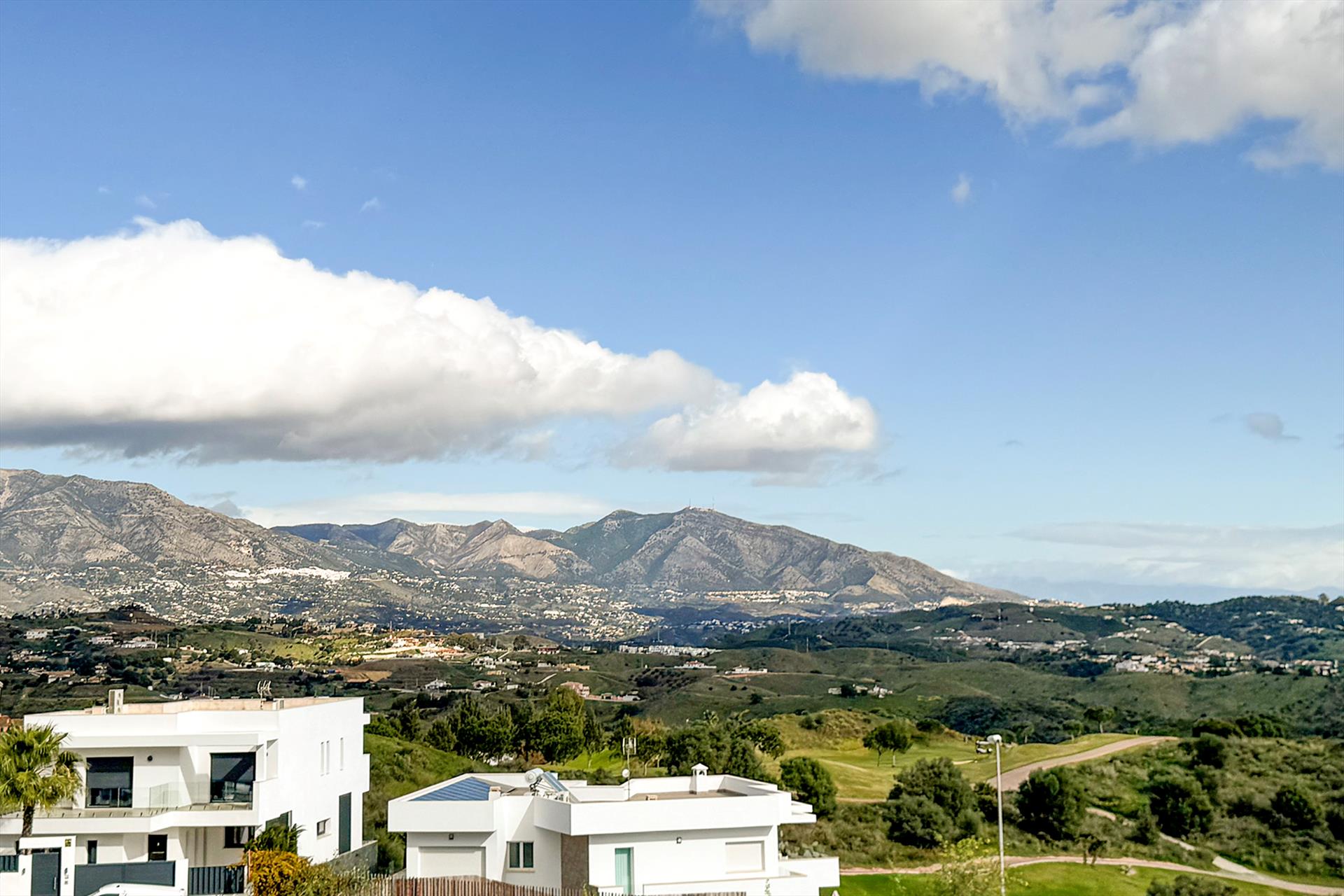 La urbanización está situada en una zona tranquila a solo 4 km del antiguo pueblo pesquero de La Cala y de la playa. El complejo cuenta con un bonito jardín con piscina comunitaria, piscina cubierta climatizada, gimnasio, baño turco y sauna. Desde el apartamento se puede disfrutar de hermosas vistas del valle, las montañas de Mijas y el mar Mediterráneo.