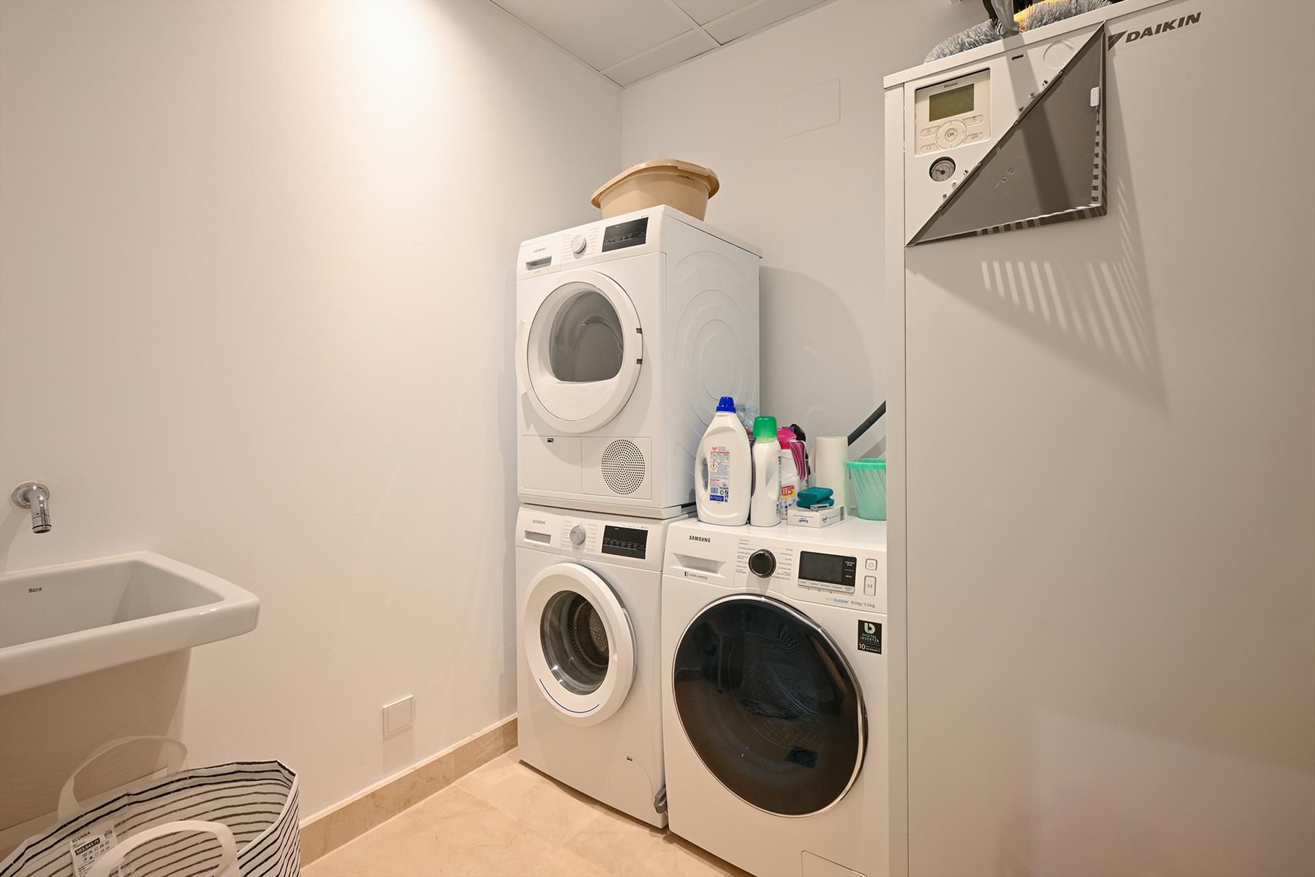 En la planta baja hay un lavadero con lavadora y secadora. Desde el sótano, una puerta con cerradura conduce al garaje comunitario con plaza de aparcamiento privado.