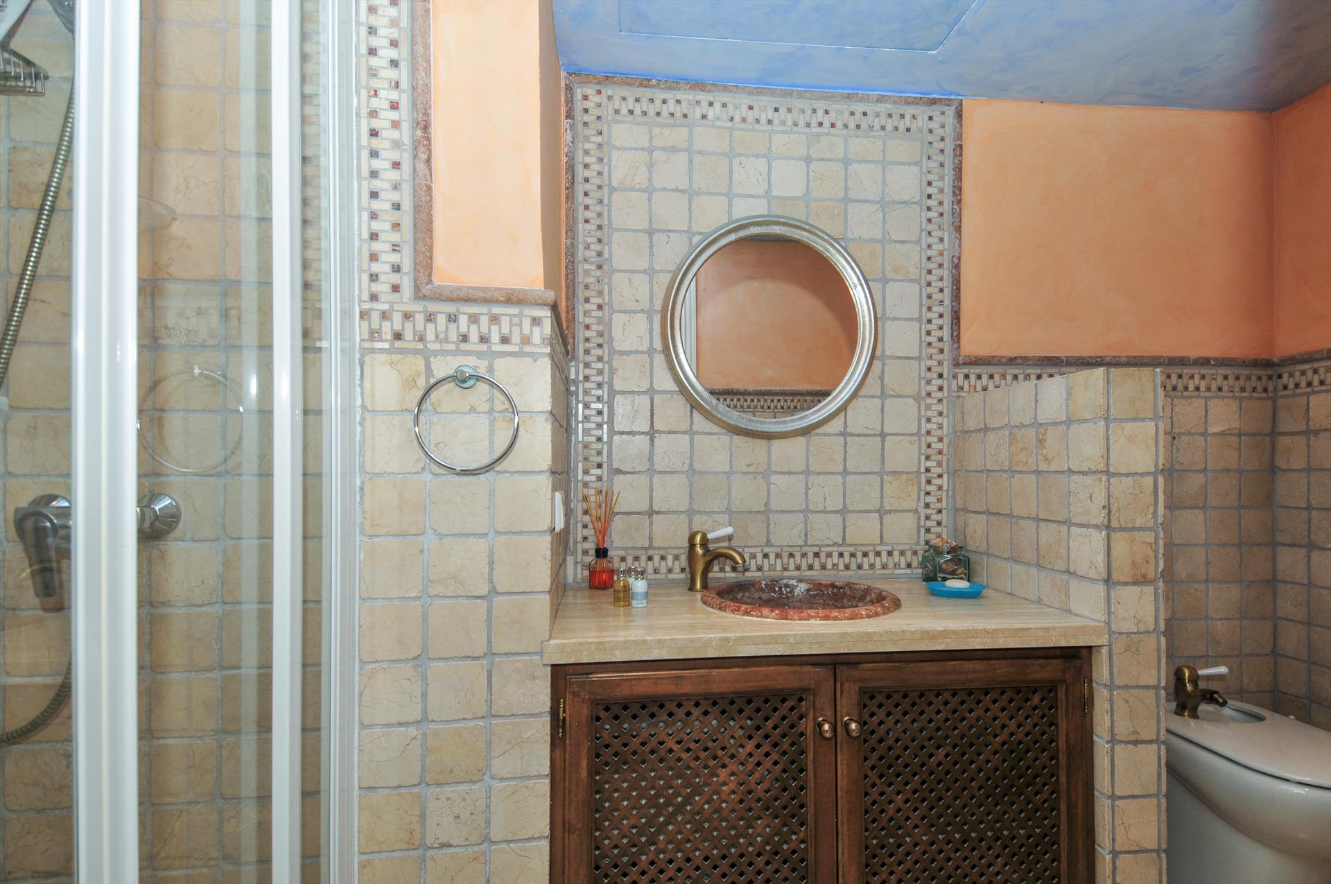 Zwei Badezimmern. Das Hauptbadezimmer hat eine Duschkabine, ein Badmöbel mit Waschbecken, eine Toilette, ein Bidet und ein Haartrockner. Das zweite Badezimmer verfügt über eine Dusche, ein Badmöbel mit Waschbecken, eine Toilette und ein Bidet.