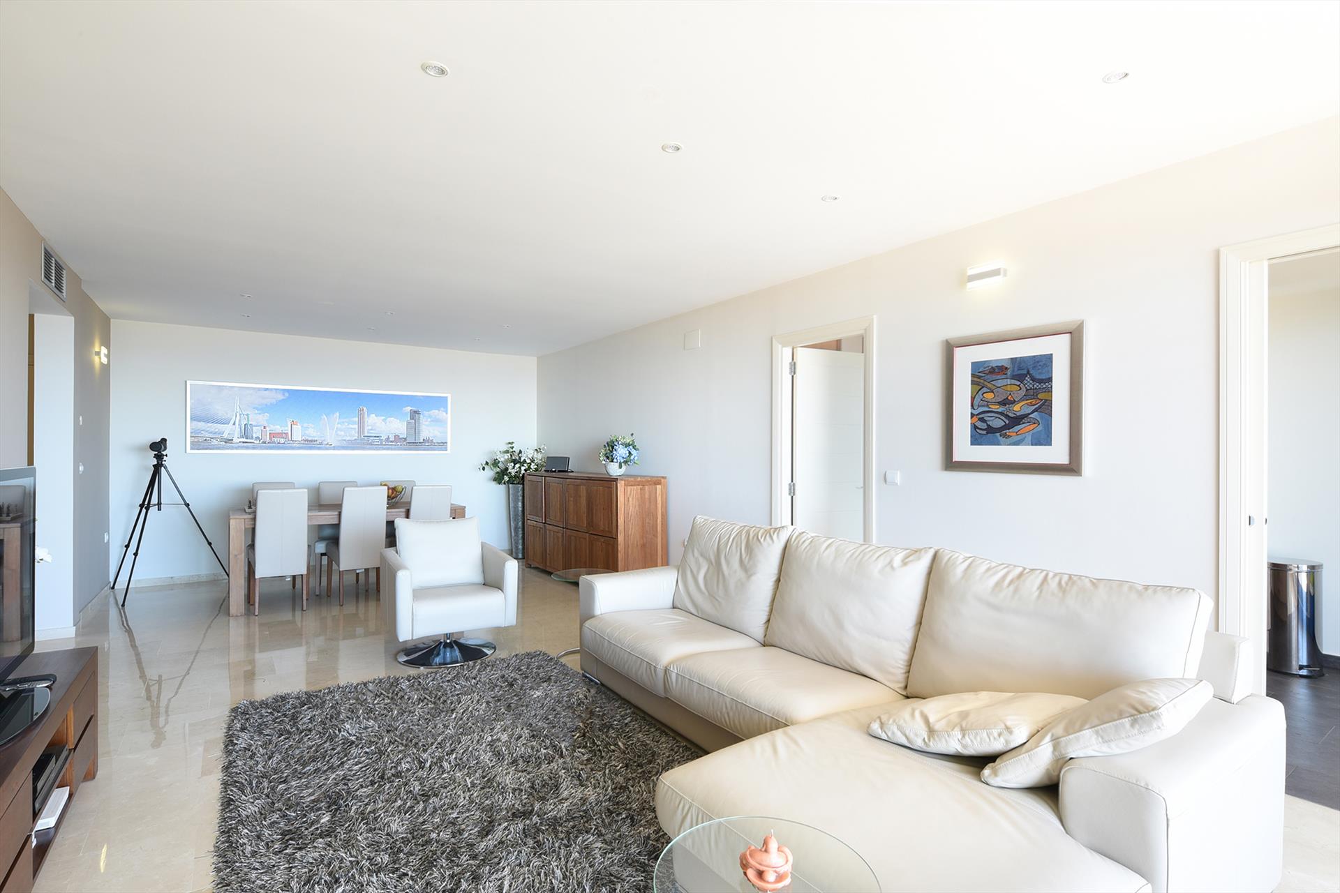 Raum, Ruhe, Komfort, ein Swimmingpool und ein atemberaubender Meerblick. Diese luxuriöse Wohnung hat alles, was Sie brauchen für einen herrlichen Urlaub an der Costa del Sol. Die Wohnung ist schön eingerichtet und verfügt über ein geräumiges Wohnzimmer, eine voll ausgestattete Küche, 2 Bäder und 2 geräumige Schlafzimmer mit bequemen Betten und eine große Südterrasse mit fantastischem Meerblick. Vor der Wohnung befindet sich der Infinity-Pool, von dem aus man einen herrlichen Blick auf das Meer und die Umgebung hat. Neben dem Pool gibt es eine Sonnenterrasse aus Hartholz und eine Liegewiese, auf der Sie sich sonnen können. Die Wohnung ist komfortabel und modern eingerichtet mit einem Loungesofa, einem Sessel, einer Estisch mit 6 Stühlen und einem großen Flachbildfernseher mit deutschen und internationalen Kanälen. Es gibt KOSTENLOSES WLAN INTERNET. Die Wohnung hat eine zentrale Klimaanlage/Heizung in allen Räumen und eine große Südterrasse mit Panoramablick auf das Meer, die Küste und die Berge. Die Terrasse verfügt über einen luxuriösen Terrassentisch mit 6 bequemen Stühlen und komfortablen Loungemöbeln.