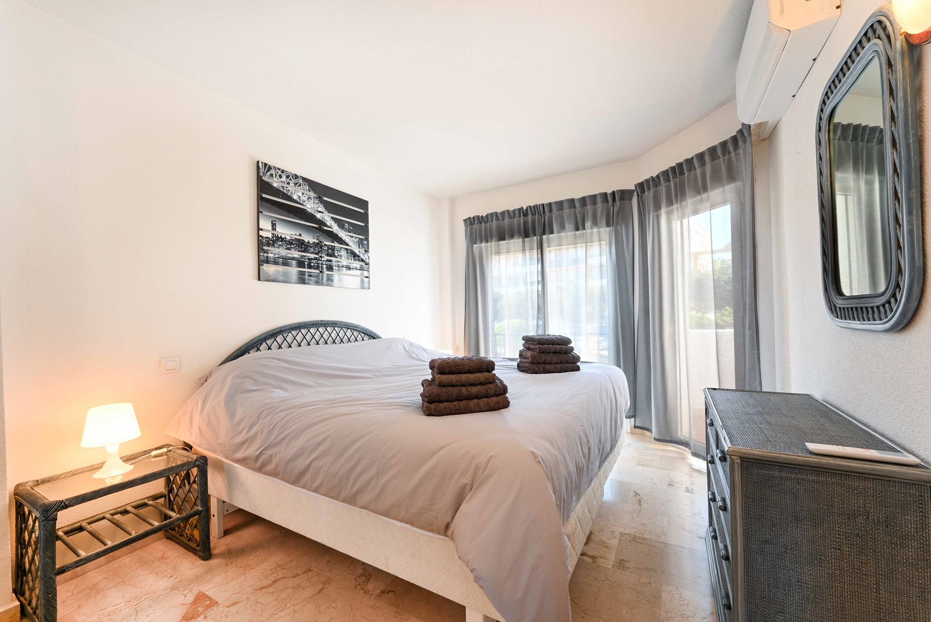 Zweites Schlafzimmer mit einem Doppelbett 180 x 200 cm und Kleiderschrank. Aircon. Doppelverglasung und Jalousien.