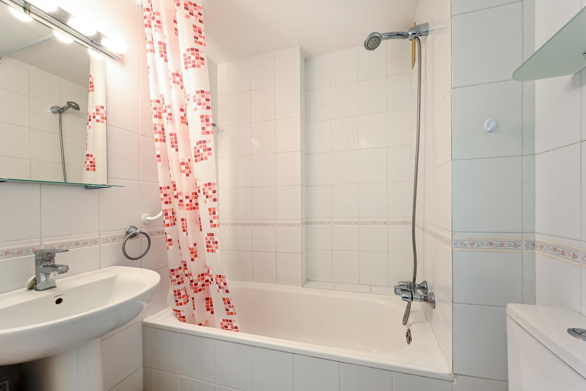 Das zweite Badezimmer verfügt über eine Badewanne mit Dusche und WC.