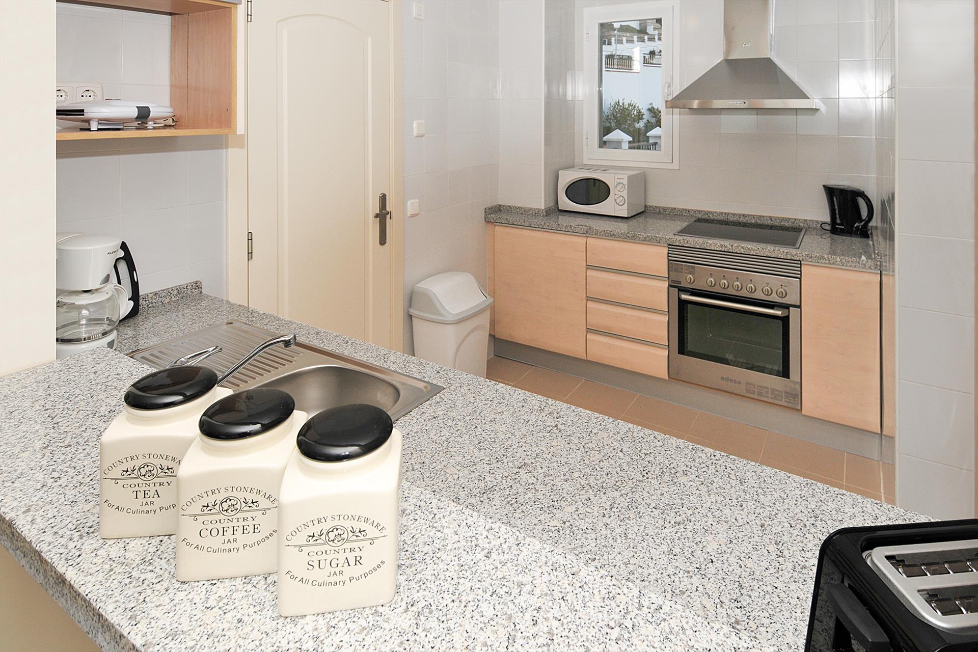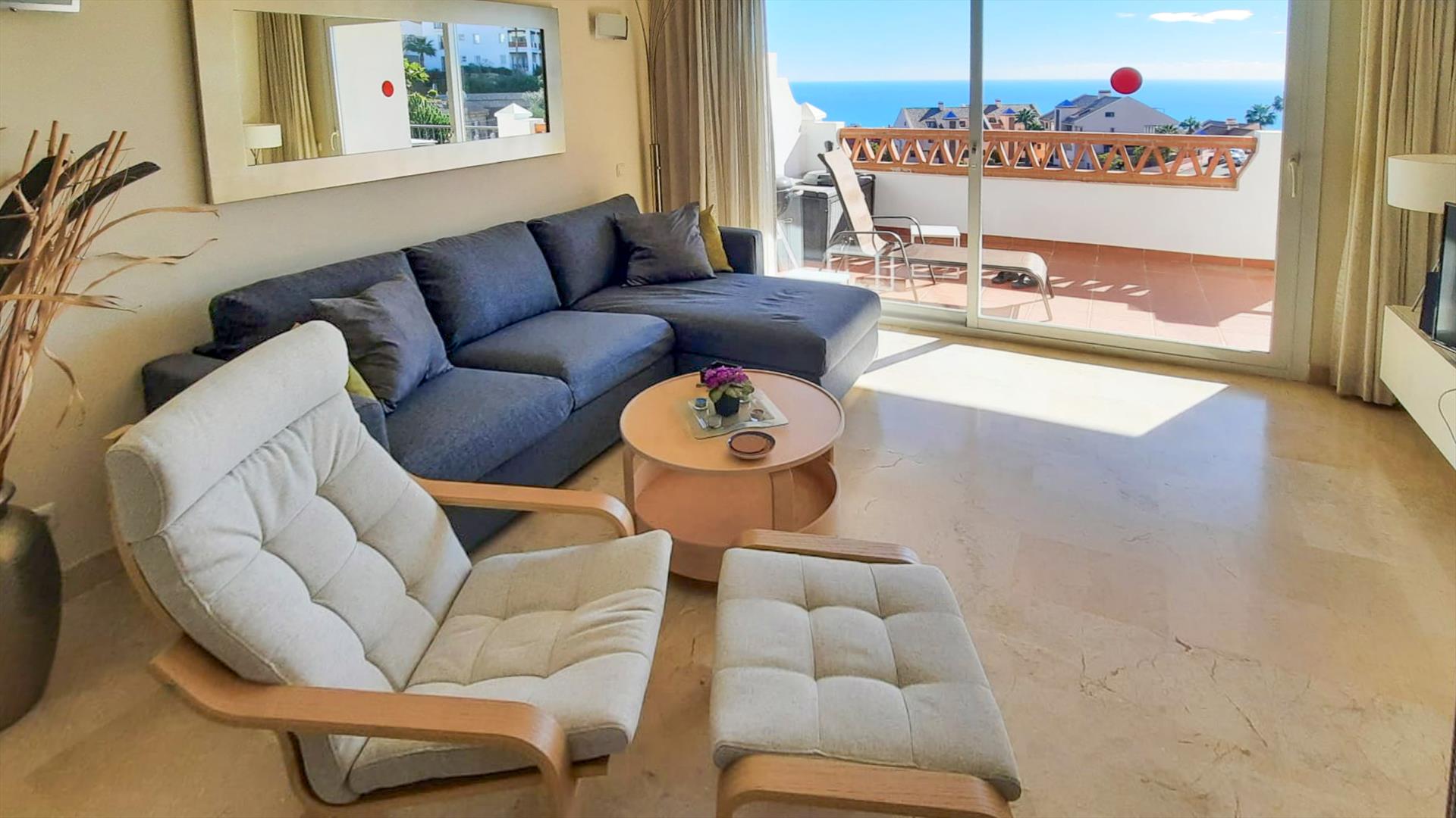 Diese moderne Ferienwohnung mit zwei Schlafzimmern und zwei Bädern befindet sich in ruhiger Lage in Las Palmeras mit Panoramablick auf das Meer und die Küste. Das Apartment ist in einem frischen, modernen Stil eingerichtet und verfügt über ein bequemes Sofa und einen Sessel sowie einen Esstisch mit 4 Stühlen. Die Wohnung verfügt über eine zentrale Klimaanlage/Heizung in allen Räumen und eine große Terrasse mit Panoramablick auf das Meer, die Küste und die Berge. Auf der Terrasse, die mit luxuriösen Terrassenmöbeln mit 4 Stühlen und 2 bequemen Sesseln ausgestattet ist, können Sie unter der spanischen Sonne frühstücken oder einen leckeren Grillabend genießen.