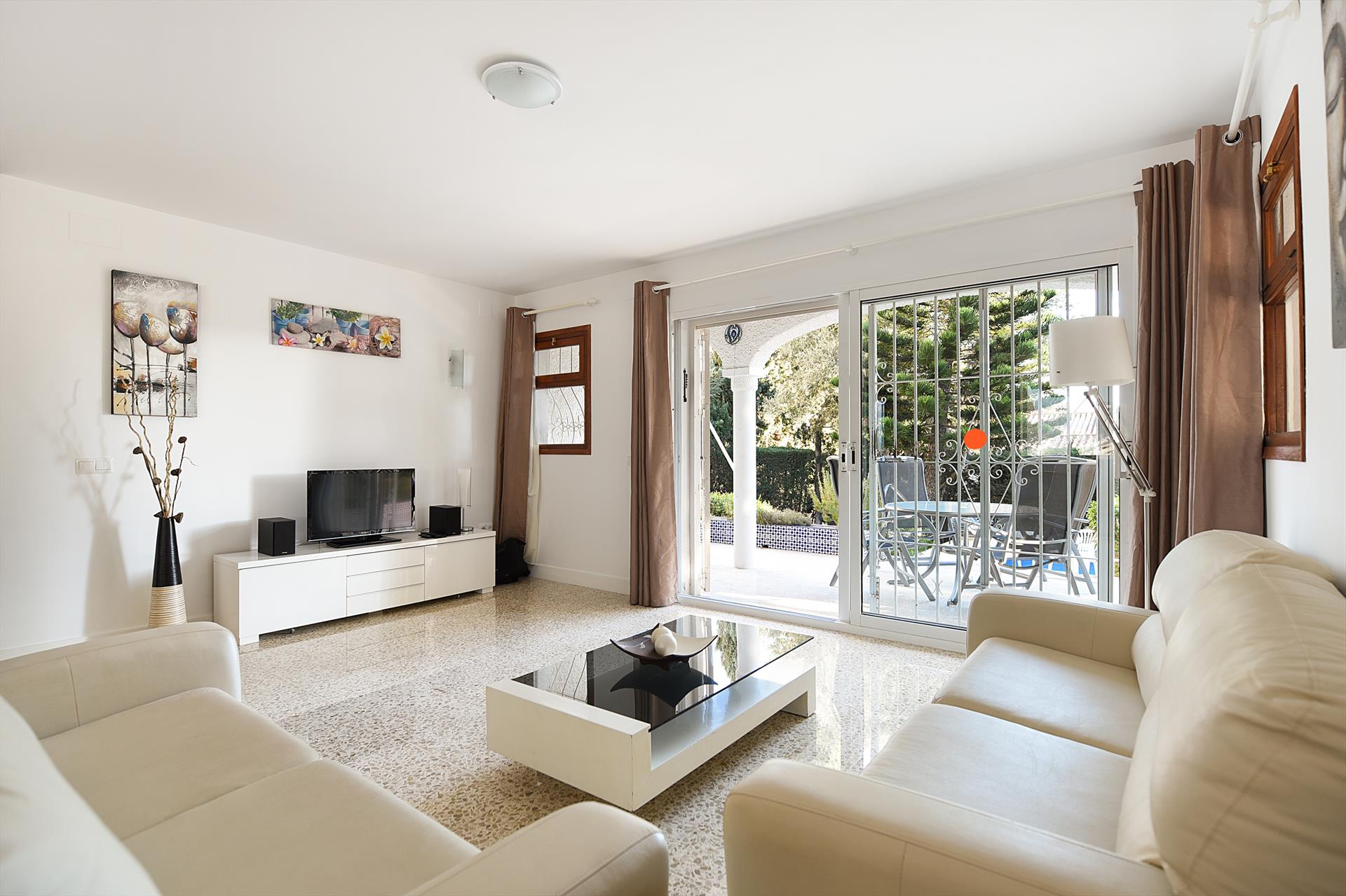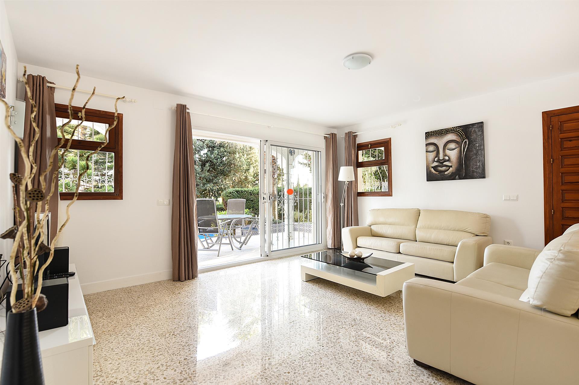 Das freistehende Ferienhaus mit privatem Pool befindet sich auf der Grenze von Torremolinos und Benalmádena. Nur 750 m vom Strand und dem Yachthafen von Benalmadena an der Costa del Sol in Südspanien entfernt. Das Haus verfügt über ein Wohnzimmer mit Lounge und Essbereich, eine separate Küche, 2 Schlafzimmer, ein Badezimmer, ein Gäste-WC und einen privaten Garten mit privatem Pool und Parkplatz vor Ort. Das Ferienhaus wurde 2017 neu eingerichtet und mit einer neuen Küche, einem neuen Badezimmer und neuen Klimaanlagen im Wohnzimmer und den Schlafzimmern ausgestattet. Das Wohnzimmer hat 2 bequeme Ledersofas und einen Essbereich mit vier Stühlen. Es gibt einenSmart-TV mit mit internationalen und deutschen Kanälen, einen DVD/CD-Player und kostenloses WLan-Internet. Durch die Schiebetür betreten Sie die teilweise überdachte Südterrasse. Am Haus können Sie den privaten Pool und die Sonnenterrasse genießen.
