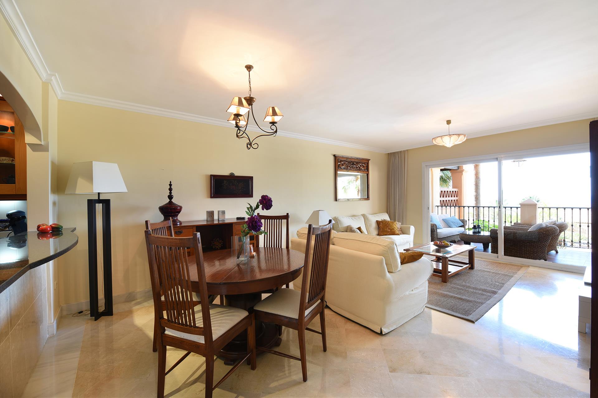 Spacious living room with sliding doors to the terrace.