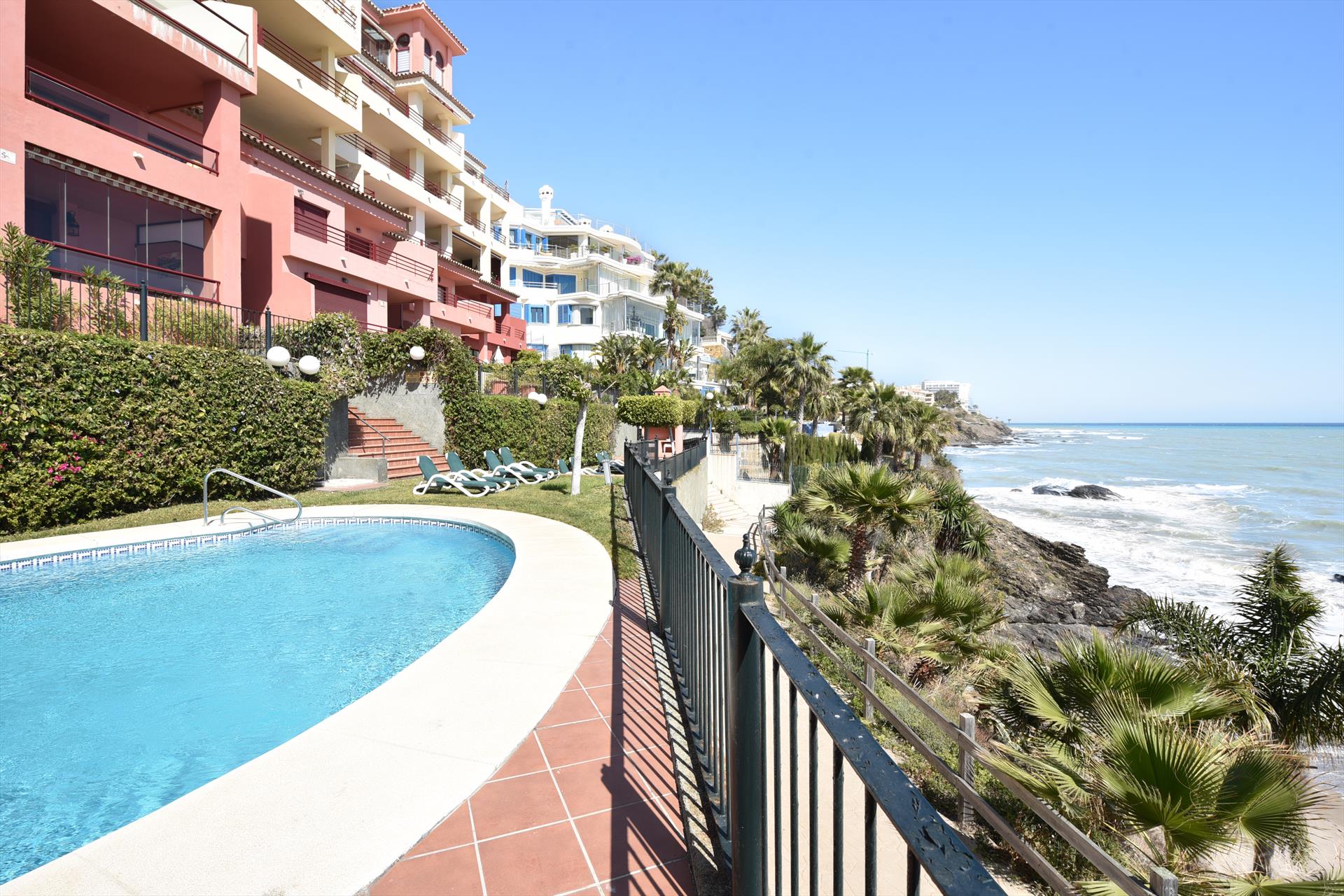 Het kleinschalige complex Puerta del Mar beschikt over een gemeenschappelijk zwembad met ligbedden. Via een trap bij het zwembad komt u direct op het rustige strandje.