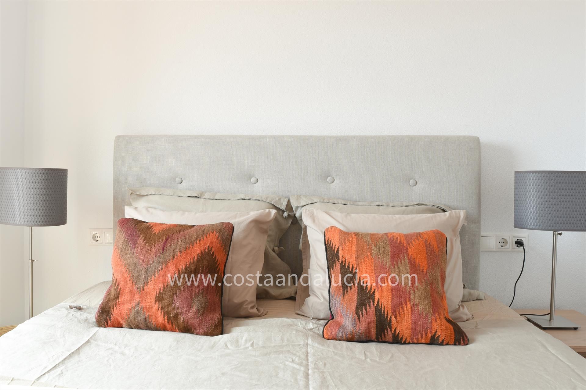 Twee slaapkamers, beide met voldoende kledingkasten en airconditioning / verwarming. De hoofdslaapkamer beschikt over een tweepersoonsbed van 160 X 200 en een schuifpui naar het terras. De tweede slaapkamer heeft 2 eenpersoonsbedden van 90 X 200. Een babybedje en kinderstoel zijn op aanvraag beschikbaar.