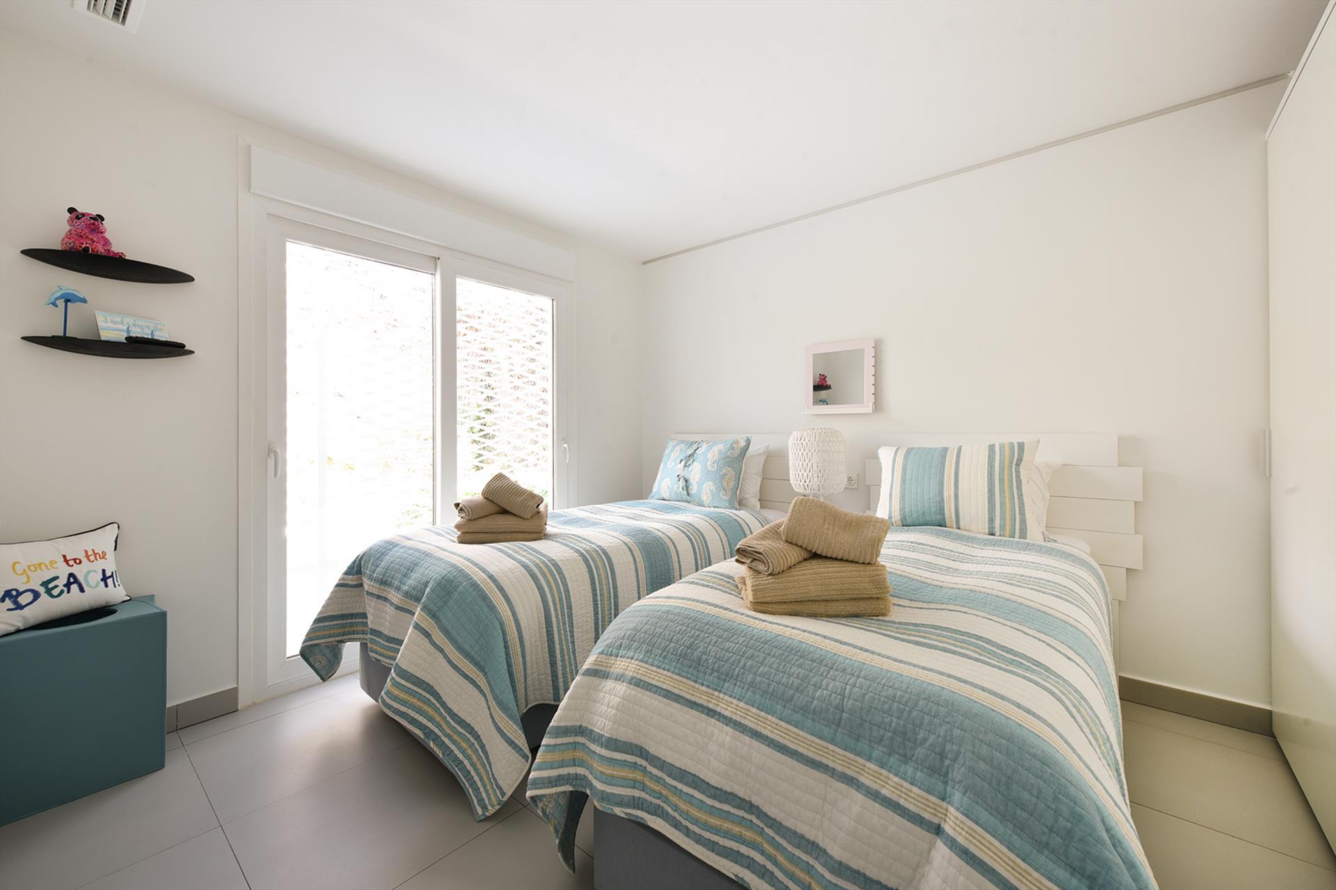 Er zijn drie slaapkamers, allemaal met voldoende kastruimte en airconditioning / verwarming. De hoofdslaapkamer heeft een tweepersoonsbed van 180 X 200, een TV, een en-suite badkamer en een schuifpui naar het terras. De tweede slaapkamer beschikt eveneens over een tweepersoonsbed van 180X200, een TV en tevens een badkamer en suite. De derde slaapkamer heeft eveneens een eigen badkamer en 2 eenpersoonsbedden van 90 X 200 die samen kunnen worden geplaatst. Een kinderstoel en een babybedje zijn op aanvraag beschikbaar.