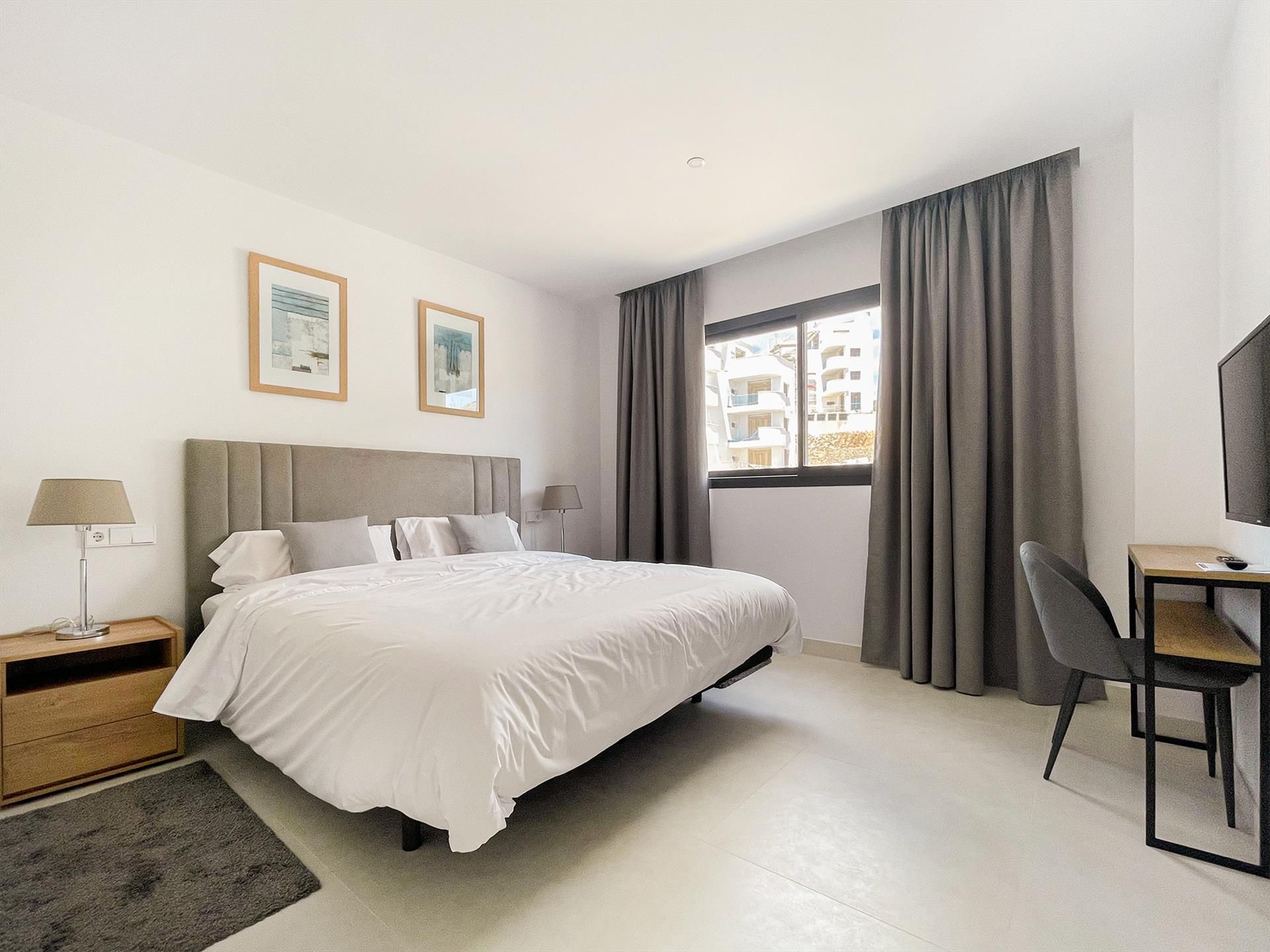 De hoofdslaapkamer heeft een tweepersoonsbed van 180x200 met goede matras, een televisie, airco en een badkamer ensuite. De tweede slaapkamer beschikt over airco en 2 eenpersoonsbedden van 90x200 met goede matrassen