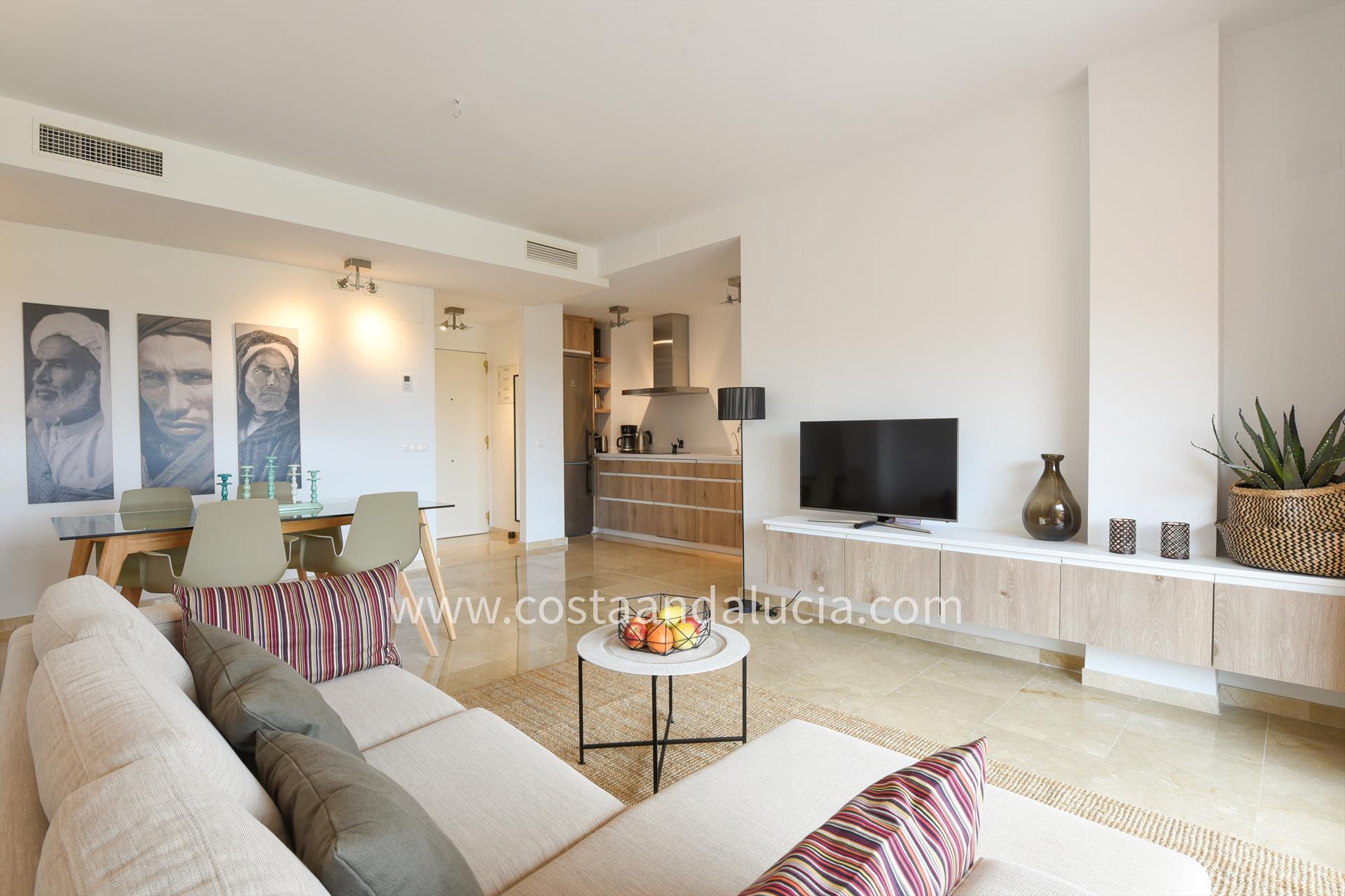 Het comfortabel appartement voor 4 personen heeft 2 slaapkamers, 2 badkamers en een gemeenschappelijk zwembad. Gelegen in La Cala de Mijas in het complex Prados del Golf op 1 kilometer van het strand. Het appartement is in 2019 gerenoveerd en bechikt over een woonkamer met een moderne open keuken en een schuifpui naar het terras op het zuiden. Er is gratis internet aanwezig evenals een televisie met Nederlandse en Vlaamse zenders. Op het terras staan een eettafel en een comfortabele hoekbank. Vanaf het terras heeft u mooi uitzicht over de tuin en het zwembad.