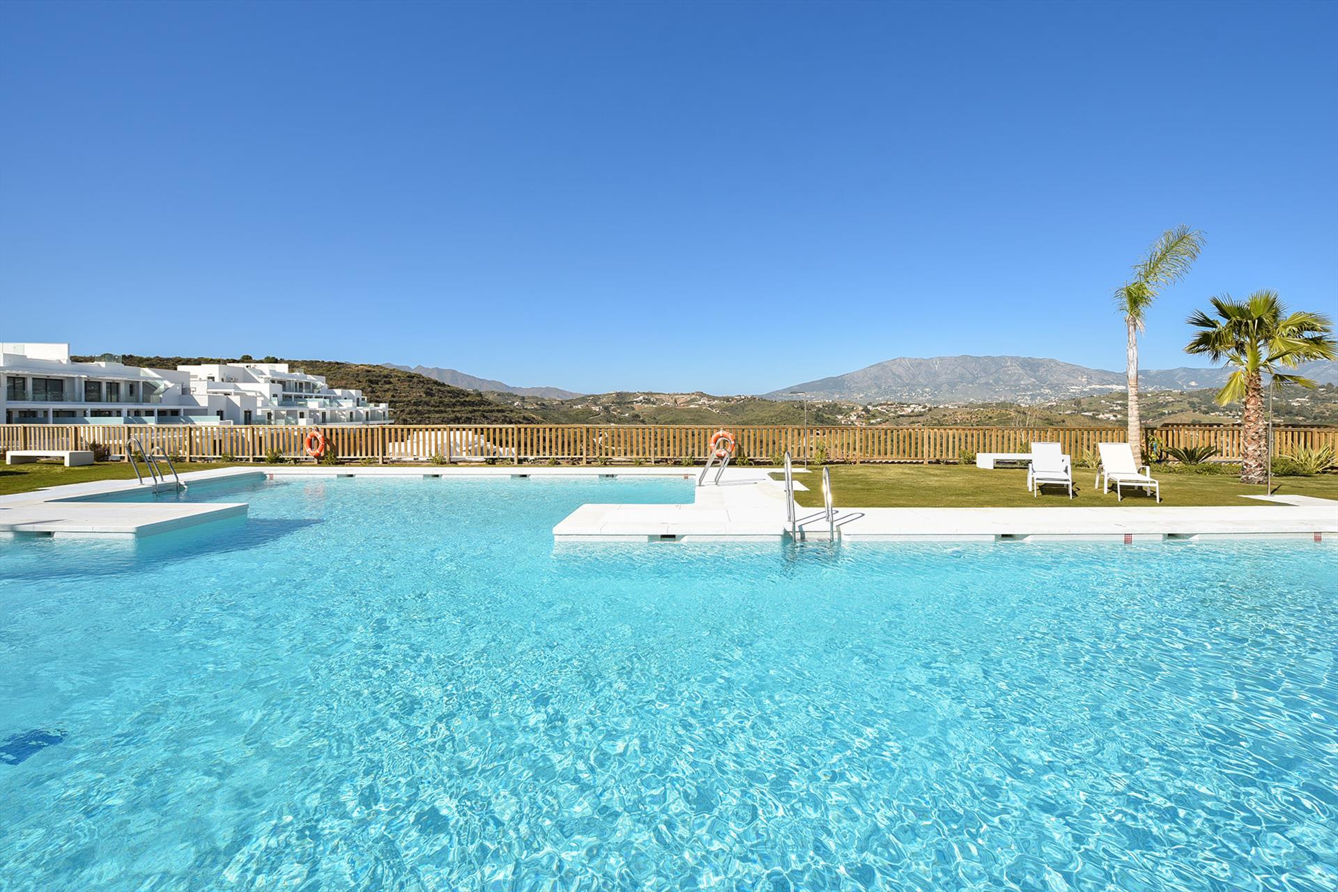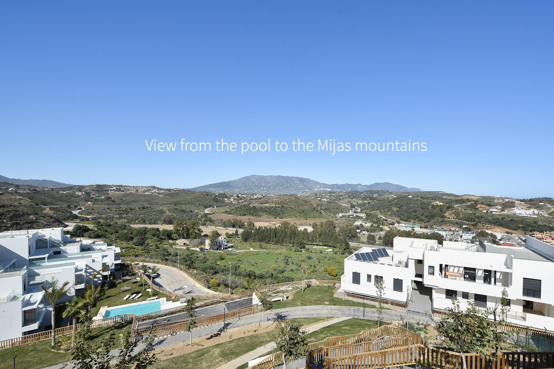 De appartementen liggen in een rustige omgeving op slechts 2 km van het oude vissersdorp La Cala en het strand. Het complex beschikt over mooie tuinen met een waterval, 2 royale zwembaden, gratis te gebruiken fitness center, paddel tennis, een kinderspeelplaats en een sauna. Tevens is er een op aanvraag te gebruiken ontspanningsruimte naast het zwembad met een terras met bar en twee barbecues. Vanuit het appartement en het zwembad kun je genieten van het prachtige uitzicht op de vallei, de bergen van Mijas en de Middellandse zee.