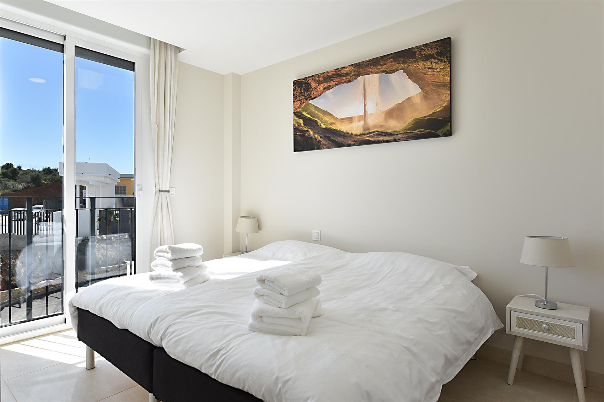 De hoofdslaapkamer heeft een tweepersoonsbed van 180X200m, een badkamer en-suite en een schuifpui naar het terras.