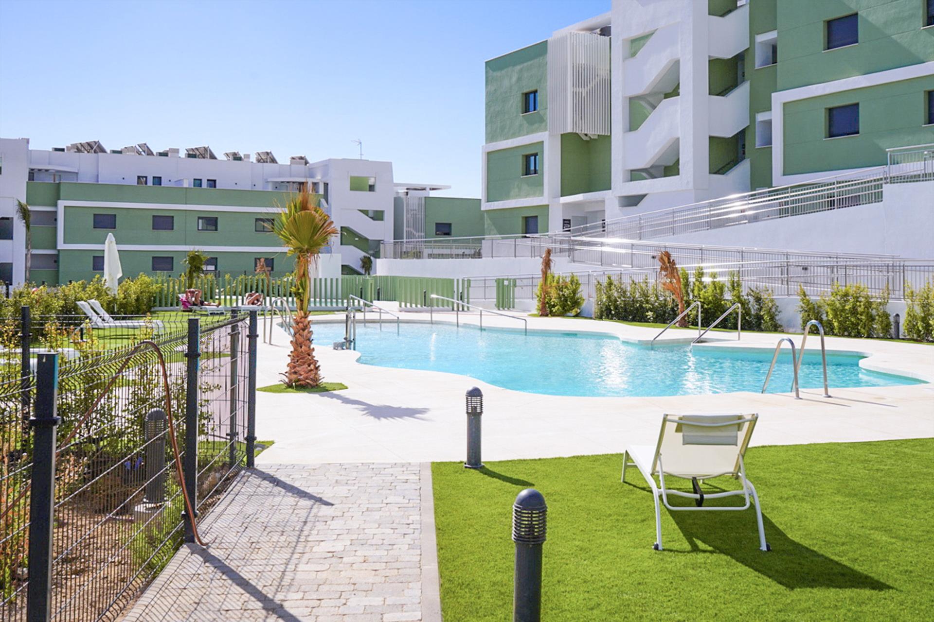 Het nieuw gebouwde appartement is modern ingericht en van alle gemakken voorzien. Het beschikt over 2 slaapkamers, 2 badkamers en een woonkamer met zithoek, een bureau/werkplek met twee beeldschermen en een moderne open keuken met eetbar en vier barstoelen. De keuken is voorzien van alle benodigde apparatuur. Vanuit de woonkamer kom je via de schuifpui op het overdekte terras met comfortabele lounge meubels en een eettafel met 4 stoelen. Vanaf het terras kun je genieten van het uitzicht op de vallei, de zee en de bergen van Mijas.